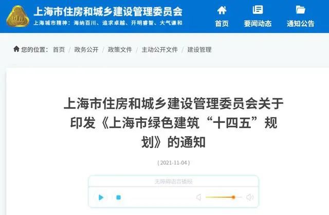 地方政策上海市綠色建筑“十四五”規劃:低能耗建筑示范項目不少于500萬平方米