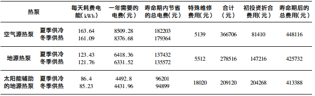 調(diào)查表明,在整個壽命期之內(nèi),一般使用者都會更換一次壓縮機,按照研究的數(shù)據(jù),為了提高整個系統(tǒng)的效率,壓縮機大多在壽命期的第14年更換,使用更高效昂貴的壓縮機。地大熱能地源熱泵事業(yè)部專家認(rèn)為考慮到本文研究的熱泵系統(tǒng)冷量接近,認(rèn)為更換壓縮機對于費用比較不產(chǎn)生影響。