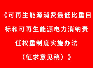 《可再生能源消費(fèi)最低比重目標(biāo)和可再生能源電力消納責(zé)任權(quán)重制度實(shí)施辦法(征求意見(jiàn)稿)》公開(kāi)征求意見(jiàn)