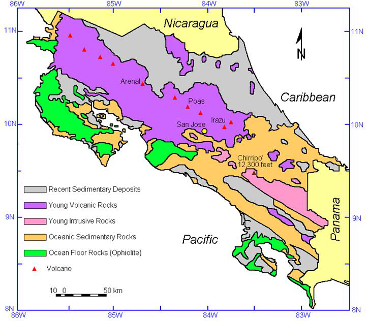哥斯達黎加位于中美洲地峽,屬于北美洲,北緯10°,西經84°。東臨加勒比海西靠北太平洋,有著1290千米有著1290千米的海岸線(東岸加勒比海212千米,西岸太平洋1016千米)。哥斯達黎加北部與尼加拉瓜接壤(邊境線長309千米),東南偏南與巴拿馬接壤(邊境線長639千米)。總共有51100平方公里,其中領土50660平方公里,領海440平方公里,比美國的西弗吉尼亞州稍小,相當于愛爾蘭。森林覆蓋率為51%。哥斯達黎加的地形是:海岸邊是平原,而中部被崎嶇的高山所隔絕。該國宣布其專屬經濟區為200海里,領海為12海里。氣候屬于熱帶和亞熱帶,還有一部分是新熱帶。