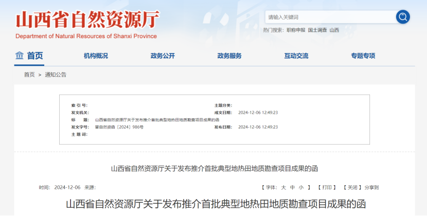 山西省首批典型地熱田地質勘查項目成果