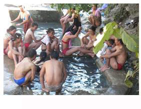 云南躍進(jìn)橋溫泉風(fēng)景澡堂會(huì)的熱水最高達(dá)70-80度,由于是自然溫泉,含有多種礦物質(zhì)和稀有金屬元素,對(duì)人體的某些疾患有特殊的療效,因而慕名前往洗浴的客人遠(yuǎn)到西藏也不乏大有人在,只是現(xiàn)在的時(shí)間主要是周邊的人們,到三、四月份就會(huì)有更多遠(yuǎn)方的西域者陸續(xù)到來(lái)。不少洗浴者一洗就是十天半月,更有甚者能洗兩到三個(gè)月,目的是治病,據(jù)說(shuō)還真有不少人治好了疑難雜癥,不然的話怒江“澡堂會(huì)”怎么會(huì)在印度、尼泊爾、巴基斯坦、新加坡、馬來(lái)西亞甚至美國(guó)等地聞名遐邇。